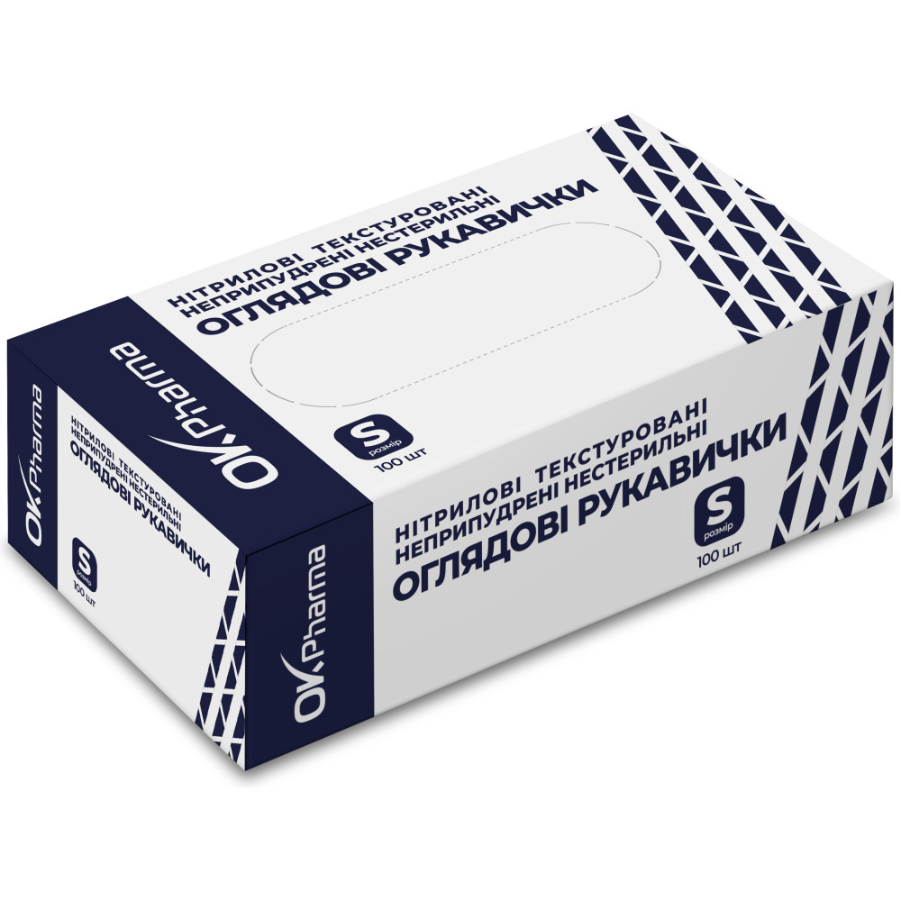Рукавички нітрилові текстуровані, неприпудрені, оглядові, нестерильні розмір S 100 шт