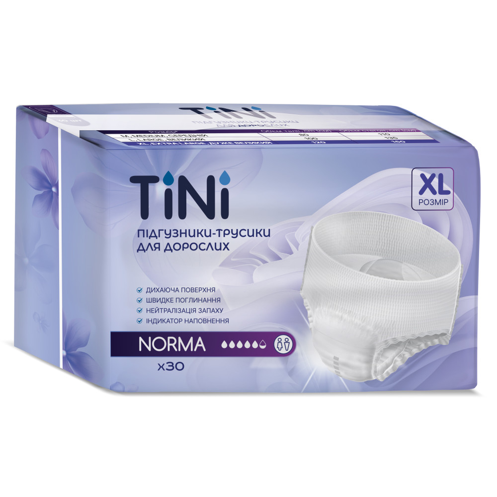 Оформить заказПідгузники для дорослих TINI NORMA мають три найпопулярніші розміри - M, L, XL.